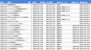 - 受注履歴一覧(スプレッドシート): 同時に、普段私たちが使い慣れているスプレッドシートへもデータを自動転記します。担当者はこの履歴一覧を見るだけで、「今どんな注文が来ているか」を確認・編集できます。
